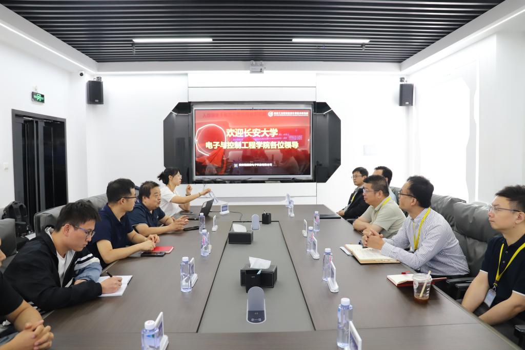 为加强产学研合作,推动毕业生高质量就业和专业硕士实践基地建设工作,9月23日,电控学院院长闫茂德、副院长路庆昌等8位教师代表前往西安翔腾微电子科技有限公司开展产学研合作调研与访企拓岗活动。西安翔腾微电子科技有限公司副总经理邵刚、总监余亚刚、人力资源部负责人周静如及校友代表李润然等参加了交流调研活动。