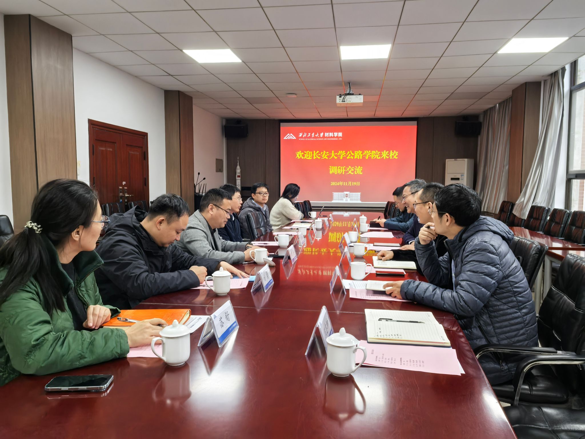 汪海年简要介绍了公路学院发展历程、学科及科研现状等情况,对材料学院在学院管理、团队建设等方面工作成效给予高度肯定,希望进一步学习借鉴材料学院先进管理理念及典型做法,推动科技创新和管理创新取得更大成果。