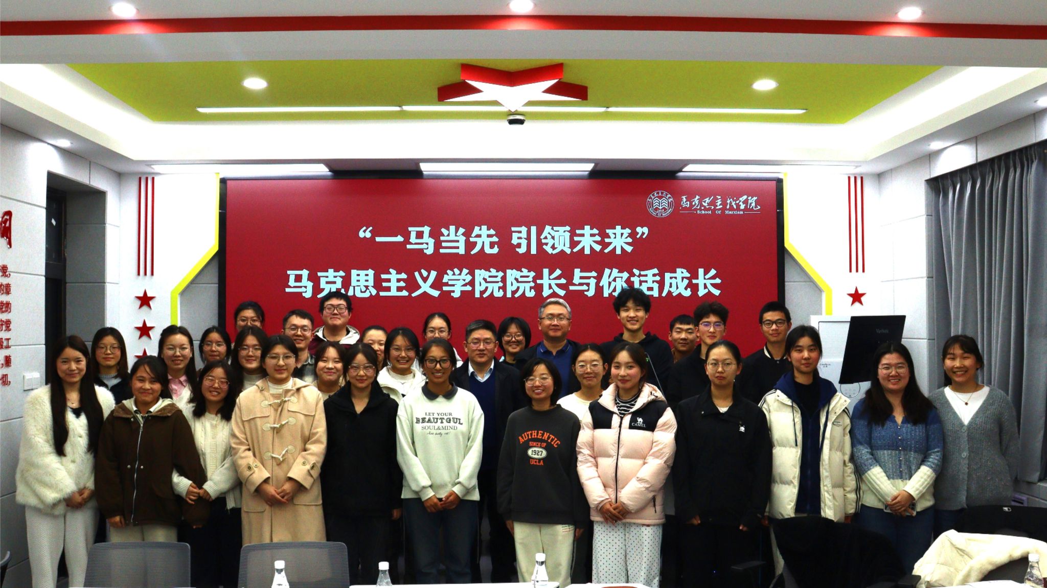 为切实做好新生教育工作,加强专业认知、学业规划和职业规划教育,增强学生的专业认同感、归属感,引导学生做好学业生涯、职业生涯规划,帮助新生“入好门、走好路、学好业、成好才”,11月27日,马克思主义学院在学校思政课虚拟仿真体验教学中心举办“一马当先·引领未来”院长与你话成长座谈交流活动。院长陈怀平、院党委副书记冯迪、院学办副主任秦丰、全体辅导员以及学院2024级本科生代表参会。会议由冯迪主持。
