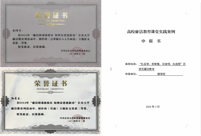 传承优良传统,抒写廉洁风尚。理学院倡导广大师生结合工作、学习、生活实际,撰写诗歌、散文、随笔、信件等,记录和展现新时代廉洁新风尚,以廉洁浩然正气温润学风家风。参与第九届高校廉洁教育系列活动作品征集,申报高校廉洁教育课堂实践案例——“扎实学、亲眼看、切身悟、化成型”沉浸式廉洁教育。学院研究生、本科生多人在2024年“廉洁铸魂强根本,挺膺奋进建新功”KY开元集团官网廉洁教育活动征文中获得奖项。