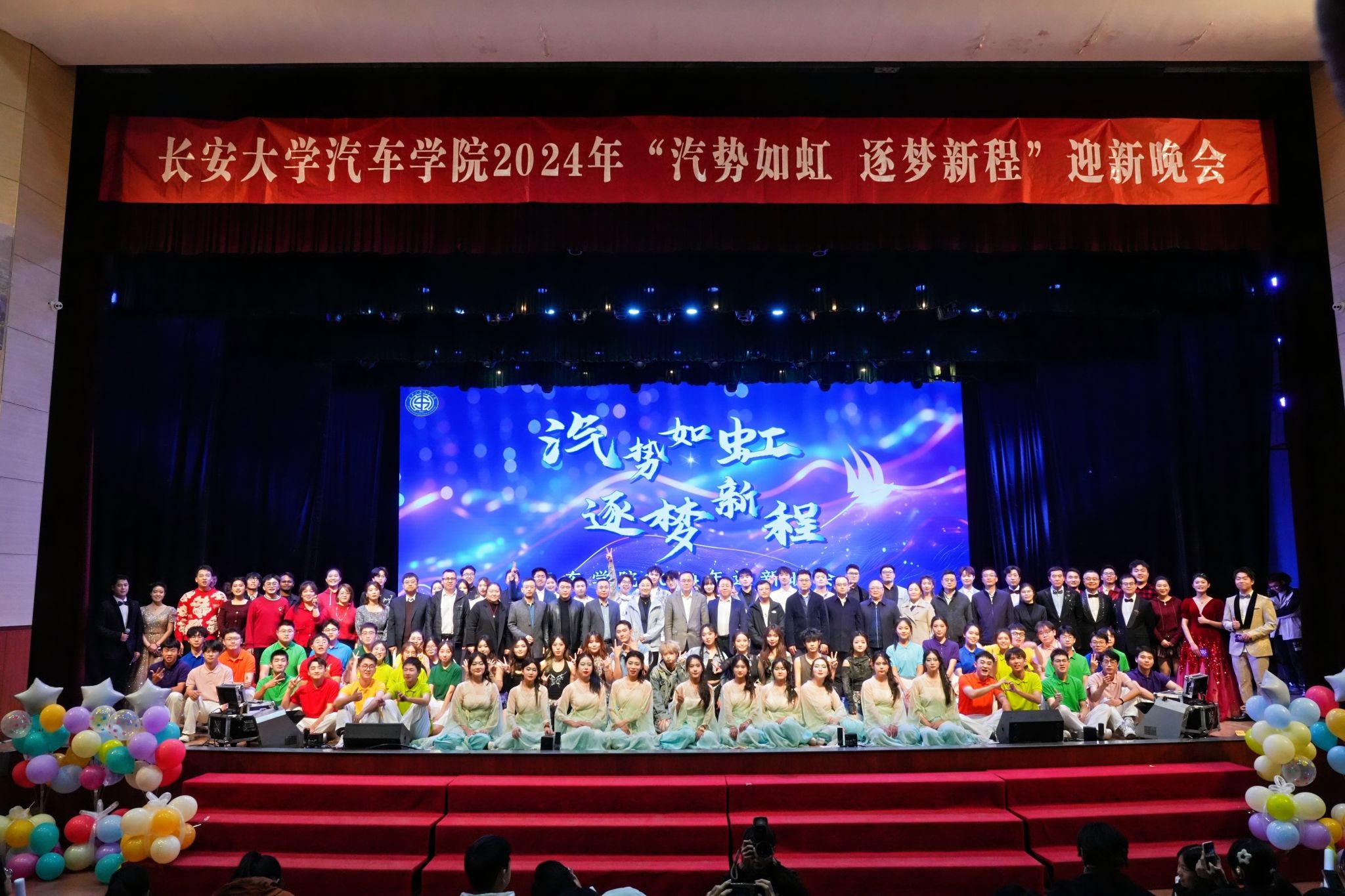 表彰大会结束后,汽车学院2024年“汽势如虹 逐梦新程”迎新晚会在热烈的欢呼声中拉开帷幕。汽车学院的师生们以悦耳的歌声和灵动的舞姿诠释着“汽院人”积极向上的精神风貌和科技报国的使命担当。