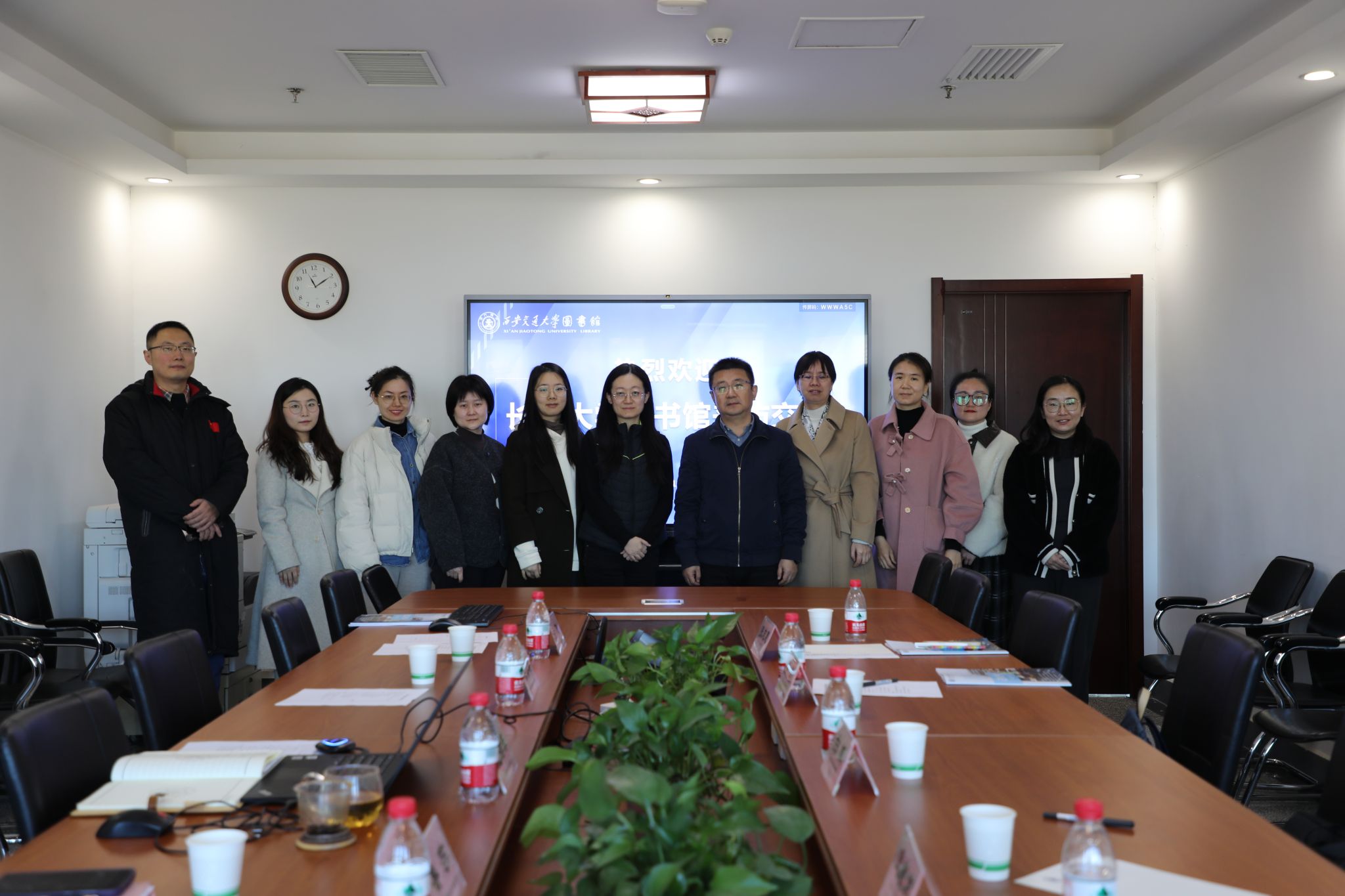 11月29日,图书馆一行来到西安交通大学钱学森图书馆,与副馆长纪洁菲及和该馆相关业务部室主任开展交流,主题为数字资源采购与绩效考核评价、学科服务、信息素养教育与数据库培训、知识产权服务等。