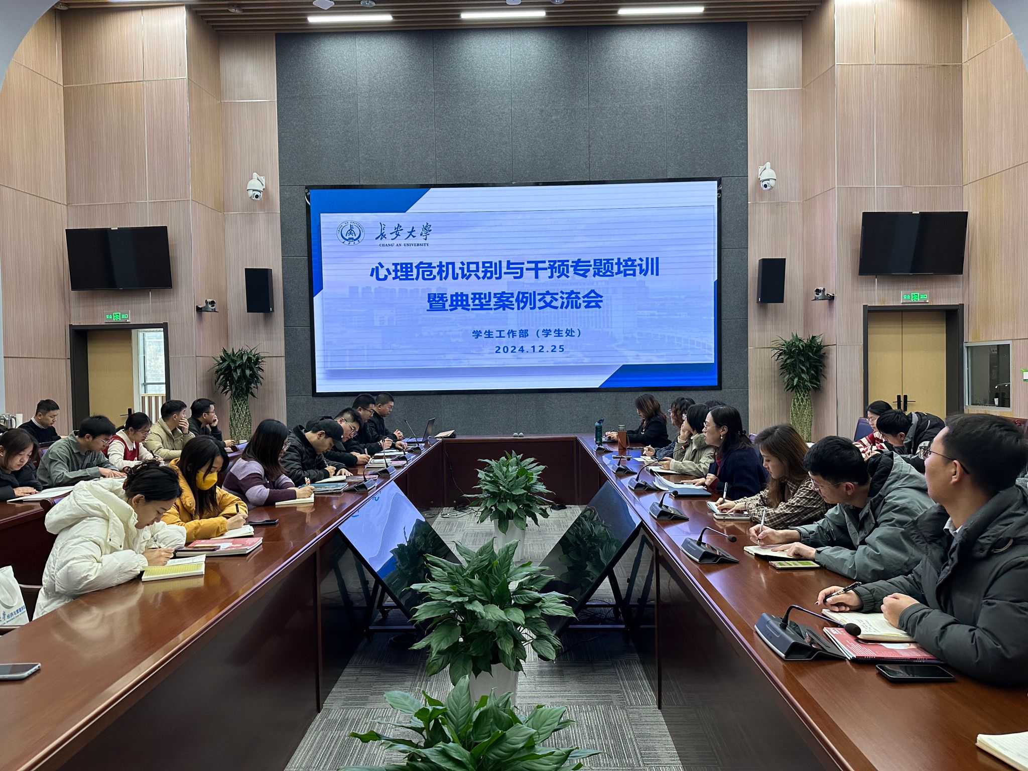 12月25日下午,学校在师生服务大厅二层第一报告厅召开心理危机识别与干预专题培训暨典型案例交流会。会议主要通报了秋季学期学生心理危机典型案例复盘情况,重点围绕加强学生心理问题感知及危机干预工作等进行培训,并对近期学生心理健康重点工作进行安排。会议由心理中心主任张芳宁主持。