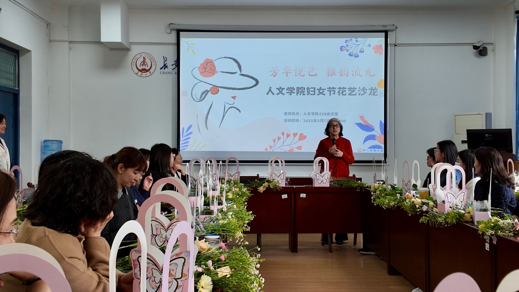 3月7日下午,人文学院工会在学院428会议室举办“芳华悦己,雅韵流光”主题活动,学院全体女教职工齐聚一堂,以花艺创作共庆第115个国际劳动妇女节。活动现场花香馥郁、笑语盈盈。人文学院工会主席孙希娟主持活动,并向全体女教职工致以节日祝福。