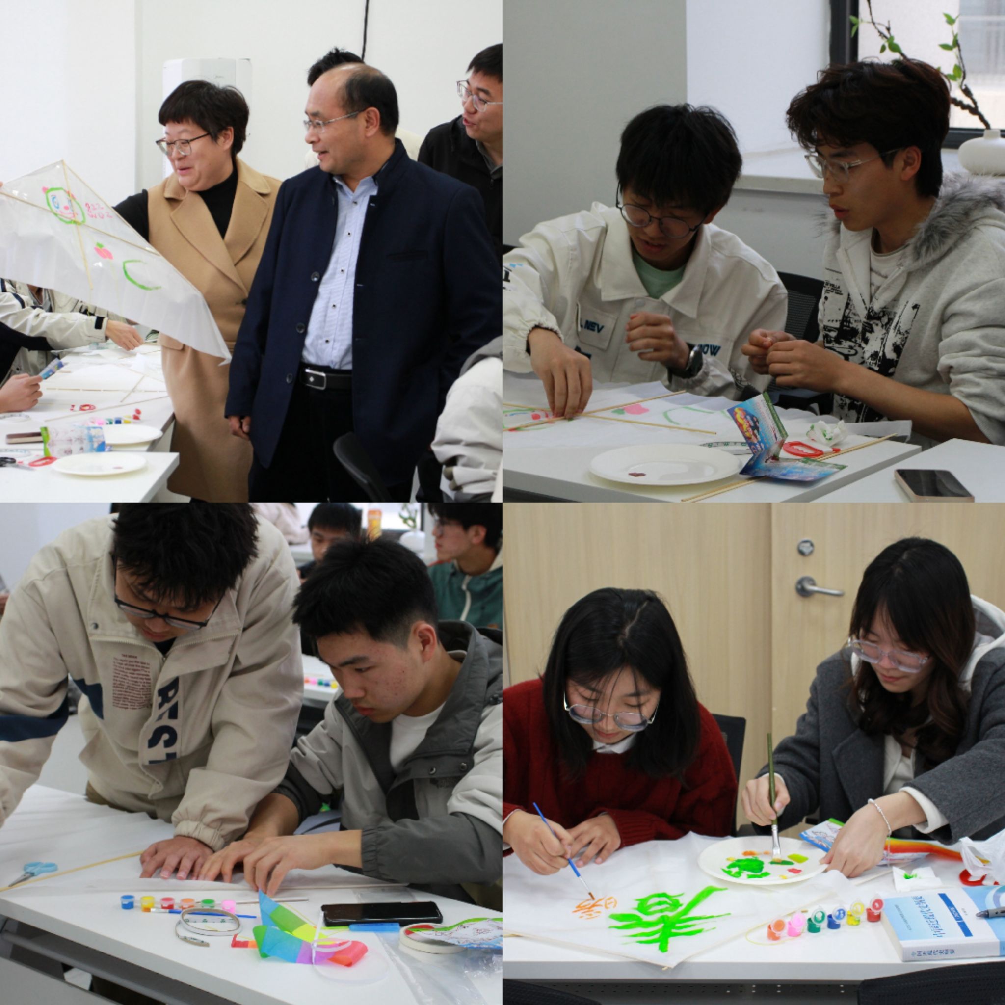 实践环节,同学们以小组为单位开展创意工坊,从选竹劈篾搭建骨架,到调色绘图晕染春光,既恪守"四平八稳"的传统规制,又融入动漫形象、抽象艺术等青春元素。当三十余件作品在绿茵场凌空起舞,斑斓纸鸢与笑语欢歌相映成趣。王振军寄语同学们:一是要让“走出宿舍、走向自然”成为学生成长的必修课,在触摸传统文化中汲取精神养分,让文化自信成为青春最亮丽的底色;二是既需守住“纸鸢线”上的本源基因,更要借时代新风拓展表达维度,期待同学们继续做文化传承的“破壁者”,以科技、艺术与创意激活传统的当代价值。