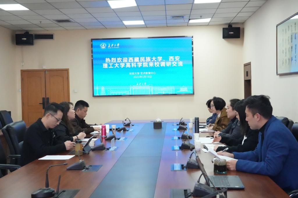 3月18日下午,西藏民族大学教育学院艺术专业负责人张继芳、播音专业负责人王彪和西安理工大学高科学院公共艺术中心副主任(主持工作)石彦喆一行3人来到艺术教育中心交流座谈。艺教中心副主任(主持工作)陈晏、副主任张红和教师代表参加座谈会。
