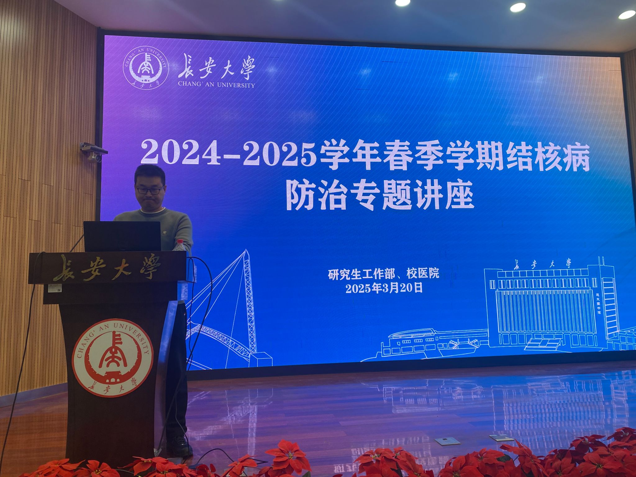 3月19日、20日,校医院联合学工部、研工部分别在北校区、南校区开展线上线下结核病防治专题讲座。讲座由陕西省疾病预防控制中心副主任医师张路钱主讲。张路钱结合高校聚集性生活学习的环境特点,剖析校园结核病传播链与早期症状识别要点,引导同学们树立正确的健康观念,掌握科学的防治方法。他提示大家,肺结核感染不可怕,早期、规律、适量、联合、全程用药很重要。