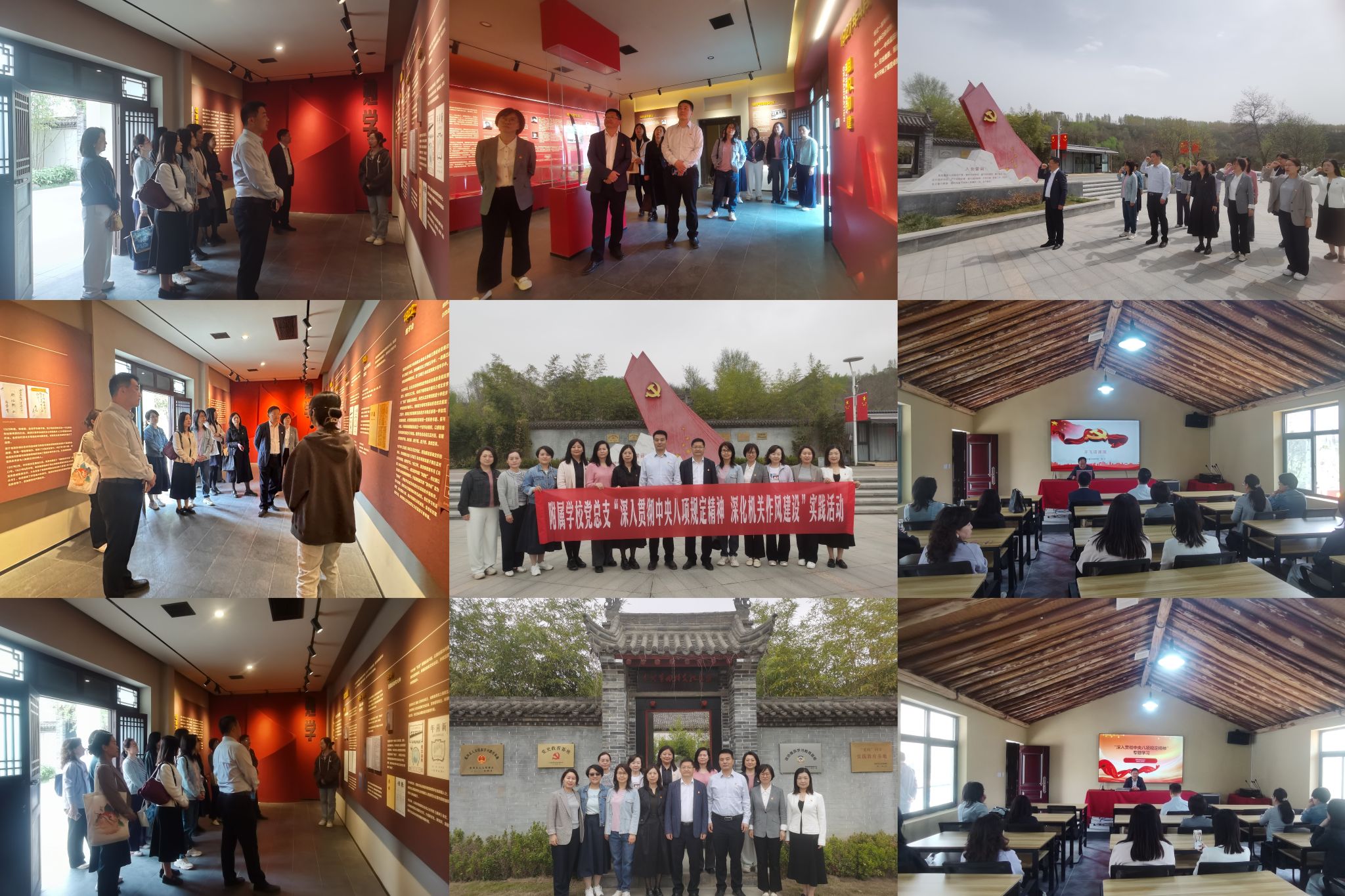 4月9日,为开展深入贯彻中央八项规定精神学习教育,丰富学习教育专题读书班学习内容,基础教育办公室、附属学校组织全体班子成员、科级干部、支部书记等前往蓝田特别支部纪念馆,开展“深入贯彻中央八项规定精神,不断深化作风建设”实地研学活动。