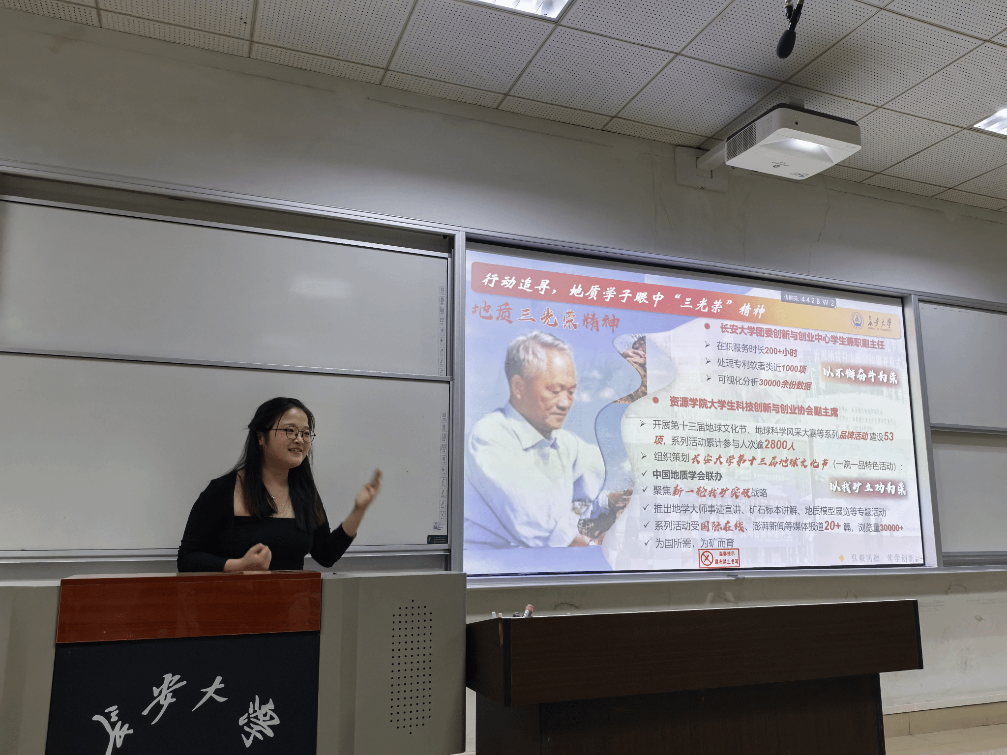 为深入学习宣传贯彻党的二十届三中全会精神和全国教育大会精神,落实新时代立德树人工程,充分发挥朋辈榜样示范引领作用,营造奋发向上的校风学风,帮助广大学生树立科学成才观,激励学生把爱国情、强国志、报国行自觉融入为中国式现代化建设的奋斗中,4月11日,资源学院在北校区WT1101教室举办“爱国奋斗勇担当·榜样引领共成长”KY开元之星宣讲活动。学院党委副书记许晨、团委副书记樊惠彬出席活动,2024级全体本科生聆听了宣讲。院团委书记巩昌盛主持活动。
