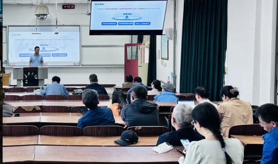黄睿龙根据中国大学mooc平台在一流课程和智慧课程建设中的工作,结合理学院基础学科课程的特点从三个方面开展了培训。一是智慧课程建设背景。以GPT-3、Sora为代表的大模型技术及知识图谱、智能助教等工具,正推动教育从“以教师为中心”转向“以学生能力发展为核心”, “人工智能+”行动、 “智能+教育”改革、智慧课程建设已成为高校提升人才培养质量、重塑教育生态的核心路径。二是智慧课程建设目标:构建“师/生/机”三元交互新范式。智慧课程不仅是技术工具的应用,更是教学理念的革新。他进一步系统阐释了智慧课程的三大特征:以学生发展为中心、全流程AI赋能、多维数据评价。三是智慧课程建设方案:六步打造“人工智能+教与学”闭环。 针对智慧课程落地,黄睿龙详细解读并示范了智慧课程建设六大步骤,现场演示了AI工具箱的实操功能,如文档翻译、OCR识别、智能PPT生成等,引发教师热烈讨论。