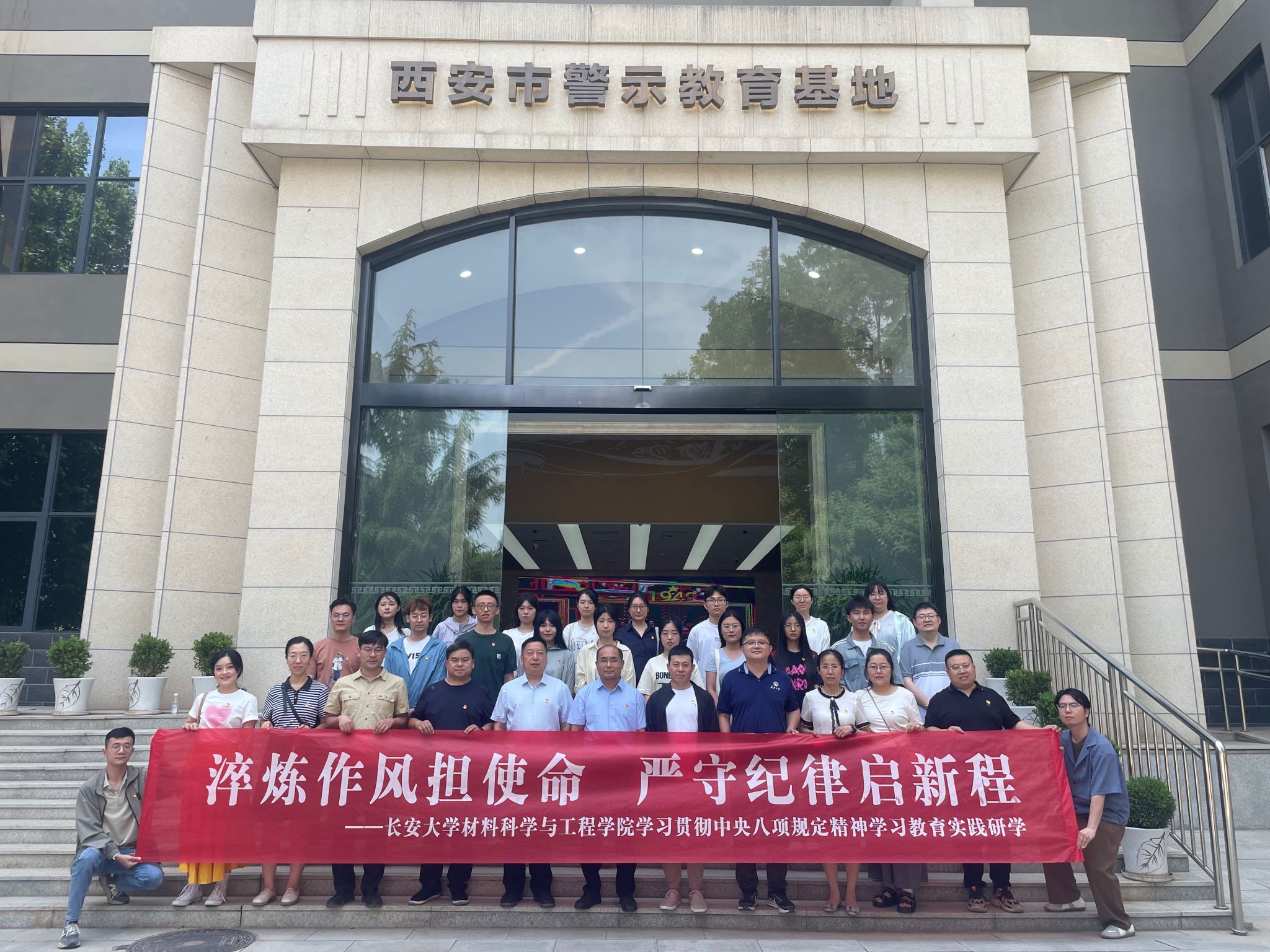 为持续开展深入贯彻中央八项规定精神学习教育,进一步提升党员领导干部和党务工作者廉洁自律意识,5月21日下午,材料科学与工程学院组织领导班子成员、科级干部、各党支部委员等赴西安市警示教育基地开展“淬炼作风担使命 严守纪律启新程”主题实践研学。
