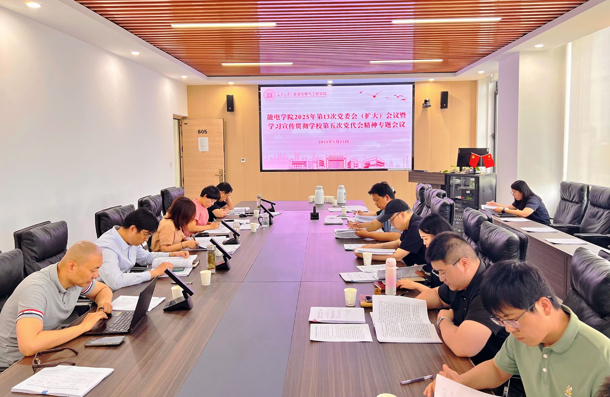5月23日下午,能电学院在603会议室召开2025年第13次党委会(扩大)会议暨学习宣传贯彻学校第五次党代会精神专题会议。学院领导班子成员、各系(室)主任、党支部书记及两办科级干部参会。会议由学院党委书记王艳主持。
