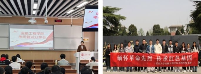 筑牢实践服务“支撑点”,凝聚支部力量。学院始终秉持以学校发展需求、社会实际需要为导向的工作理念,积极推行专业特色实践服务。在考研指导与专业科普融合方面,各支部书记充分发挥组织协调作用,邀请优秀研究生开展“交想实践汇”考研复试经验分享等活动。在与团支部常态化结对共建方面,组织前往红色教育基地、专业课程实验室及相关社区等开展实践,实现结对共建团支部全覆盖。通过实践服务有效增强了本科生党支部组织生活的感染力和号召力,使支部成员在实践锻炼中受教育、长才干、作贡献。