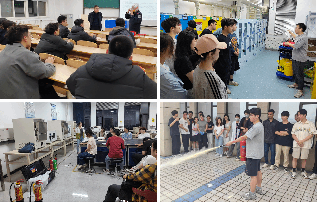 重演练,强化实战应急能力。学院创新安全教育形式,开设了学校首门关于实验室安全的通识选修课,积极联动学校保卫处与校外专业机构,聚焦消防、用电、高温设备等安全实践,拓展安全教育资源。结合“实验室安全文化月”,开展危险化学试剂撒溅处置、火灾处置、伤害应急处置、紧急疏散、应急救护等综合演练,并通过实验室日常巡查与风险排查工作,检验教育与培训成效,形成“教育—实践—反馈”的闭环管理。
