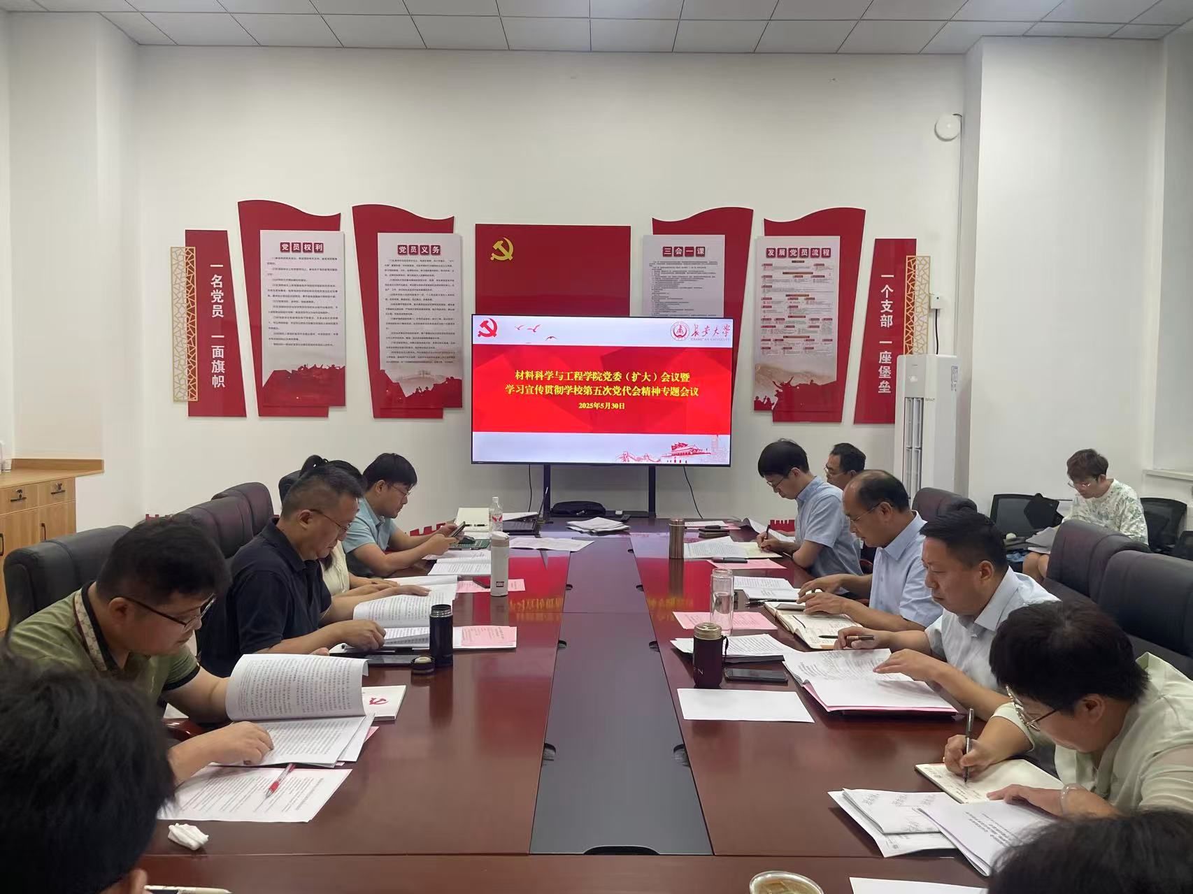 5月30日上午,材料学院在北校区致远大厦203党建活动室召开党委(扩大)会议暨学习宣传贯彻学校第五次党代会精神专题会议。学院领导班子成员、各系(中心)主任、党支部书记及科级干部参加会议。会议由学院党委书记王振军主持。