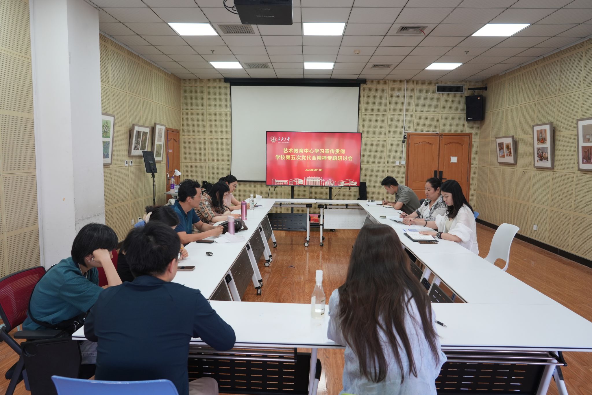 6月11日,艺术教育中心在长安文化艺术中心208室召开学习宣传贯彻学校第五次党代会精神专题研讨会,深入学习研讨学校第五次党代会精神,并安排部署宣贯工作。会议由艺术教育中心副主任(主持工作)陈晏主持,中心副主任张红及全体教职工参加会议。