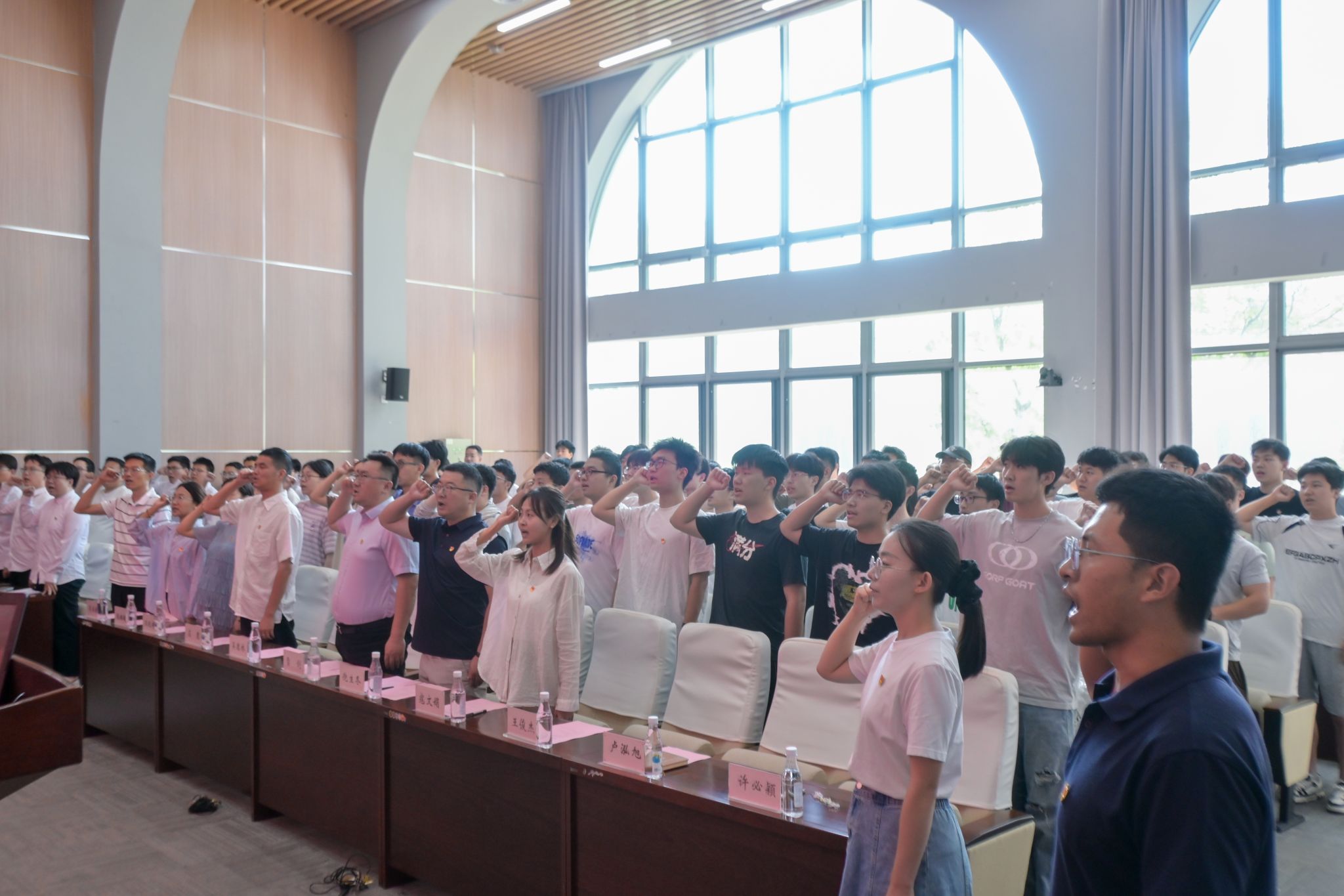 大会在庄严的国歌声中拉开帷幕。会上,全体党员重温入党誓词,在党旗前,会场全体党员面向党旗庄严肃立,举起右拳,铿锵有力地重温入党誓词,重忆入党初心。毕业生党员代表徐明坤同学发言,他对学校和学院的培养表示感谢,并表示作为学生党员和学生干部,在今后的学习和生活中,将以更高的标准严格要求自己,不断加强学习,坚定理想信念,进一步增强党性修养,发挥好先锋模范作用。
