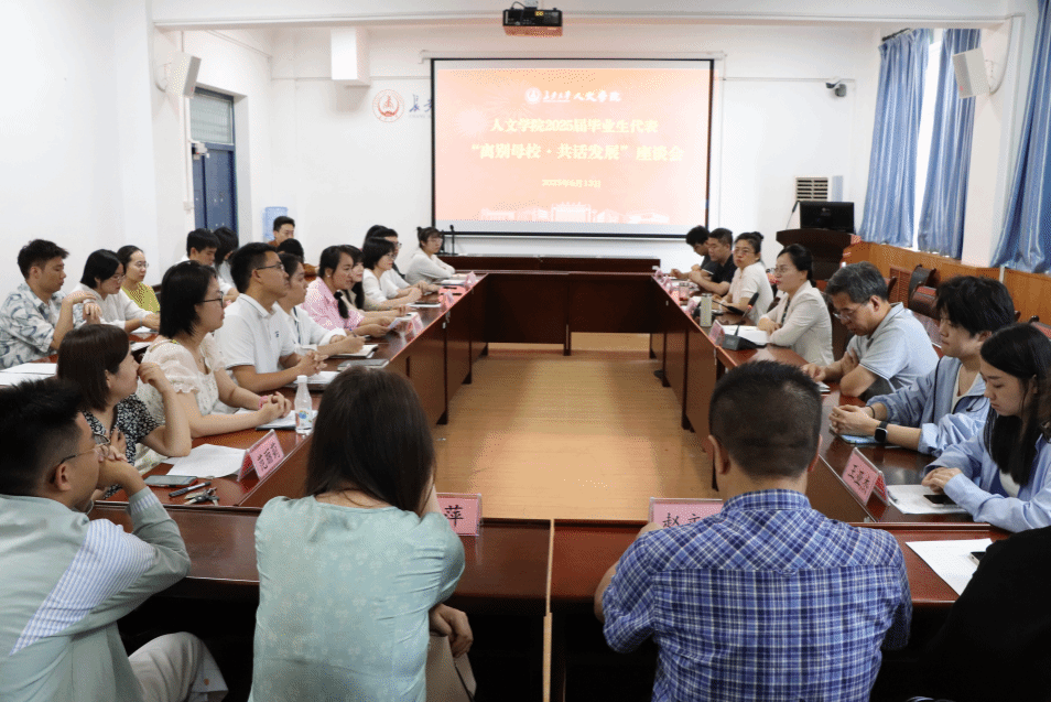 与会毕业生代表依次发言,向各位老师的悉心栽培表示衷心感谢与崇高敬意。他们回忆求学过程中的难忘时光,分享对母校深切的感恩之情以及即将离开校园的依依不舍。大家结合自身经历,围绕课程设置、实践教学、就业指导等方面积极建言献策,为学院发展贡献力量。同学们表示2025届人文学子的故事暂时落下帷幕,但青春的奋斗还在继续,他们将始终践行“弘毅明德,笃学创新”的校训精神,带着老师的嘱托和期愿,奔赴祖国各地施展抱负、建功立业。