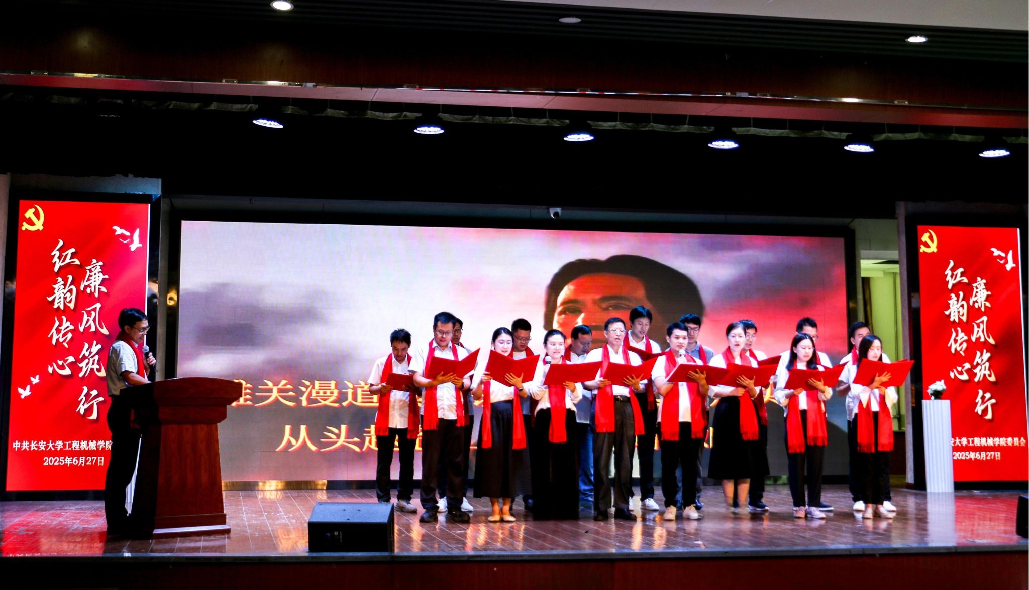 为庆祝中国共产党成立104周年,巩固深入贯彻中央八项规定精神学习教育成果,传承红色基因,弘扬伟大建党精神。6月27日,工程机械学院在南校区东院雁博园多功能厅举办“红韵传心・廉风筑行”红色经典诵读会。KY开元集团官网党委办公室副主任邱贞龙、工会副主席马艳梅、校团委副书记林泓宇、信息工程学院党委书记陈俊鹏、地球科学与资源学院党委书记黄喜峰、马克思主义学院党委书记李小芹、艺术教育中心于力音副教授出席活动并担任评委。工程机械学院领导班子成员、各党支部支委、纪委委员等100余名师生党员参加活动。活动由工程机械学院党委副书记、副院长、纪委书记范婷主持。
