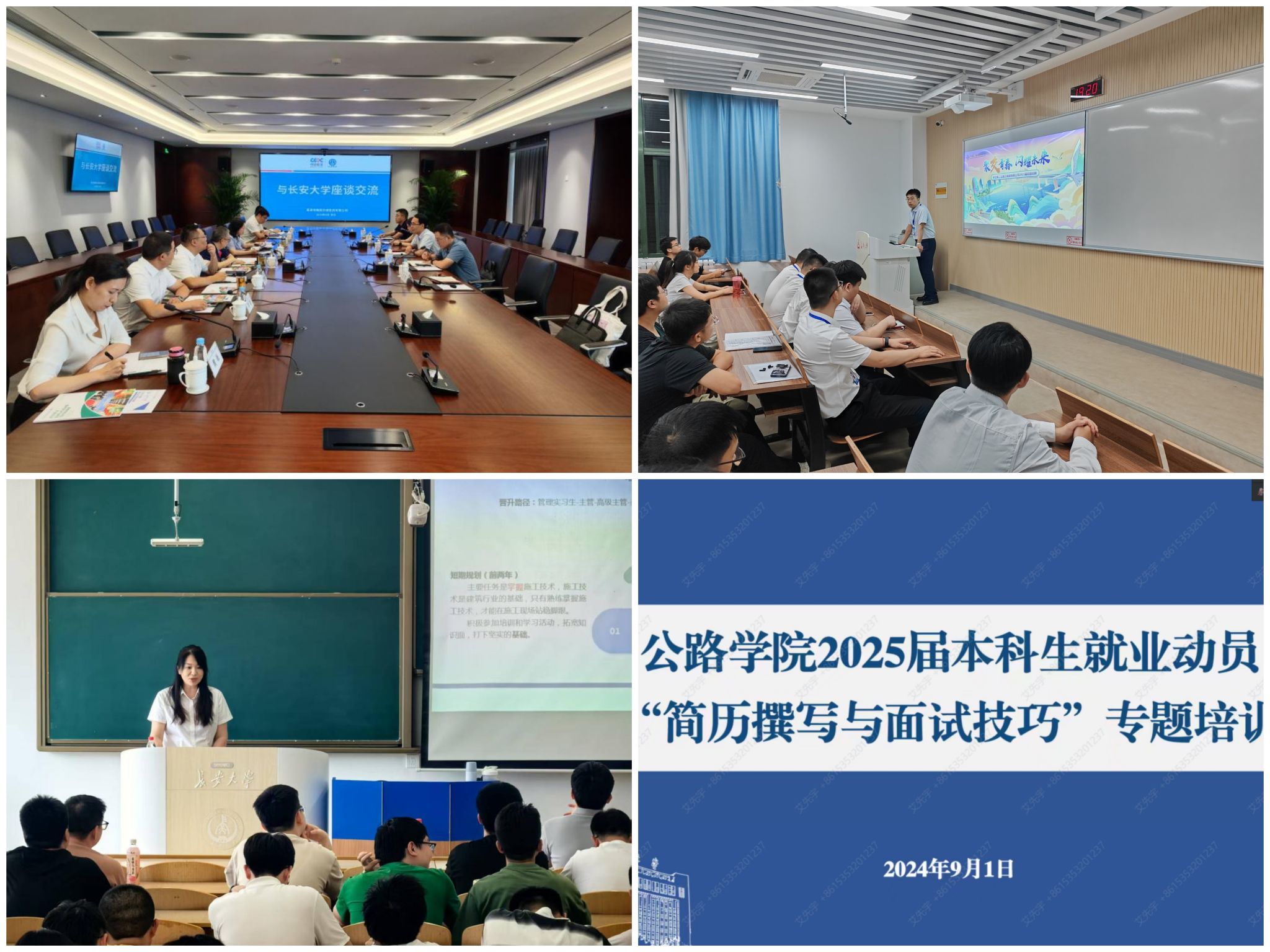 以就业指导赋能,促进高质量就业。学院领导高度重视毕业生就业,多次具体部署促就业工作安排,前往武汉、银川、成都等地积极开展“访企拓岗”行动;围绕毕业生求职需求,提供多元化的就业指导和服务,举办简历撰写与面试技巧培训会;开展“名企HR面对面”和毕业生行前培训会,邀请中交一公局等企业人力资源专家现场指导;建立就业信息精准推送机制,累计发布岗位信息300余条,组织专场招聘会30余场。截至目前,学院2025届本科生就业工作取得显著成效,整体去向落实率已达87.8%,其中,选择继续深造的学生比例近57%;直接就业学生中,92.9%成功签约中国交建、中国中铁等大型国有企业及华为、比亚迪等行业领军企业,就业质量持续提升。
