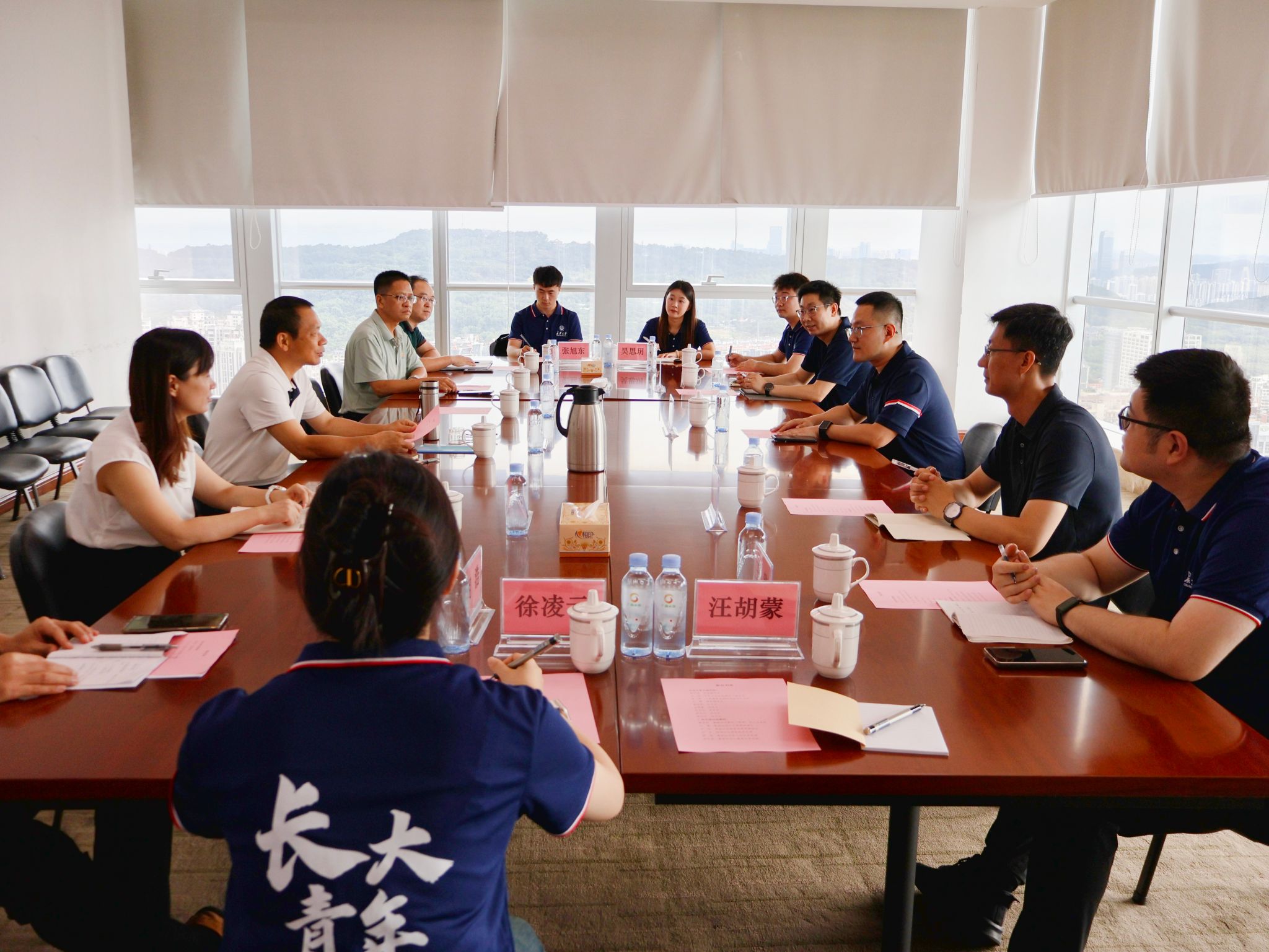 7月24日上午,两学院到访广西交科集团有限公司。该公司党委委员、副总经理、总工程师熊剑平予以欢迎,介绍了公司发展历史及主营业务,称两学院实力雄厚、优势突出,希望深化校企合作助力企业高质量发展。贾历波、李程、司伟介绍了两学院基本情况,感谢广西交科长期支持毕业生就业,希望其提供更多实习机会,促进毕业生高质量就业。会前,两学院一行参观了广西交科 “智创未来”科技展厅。