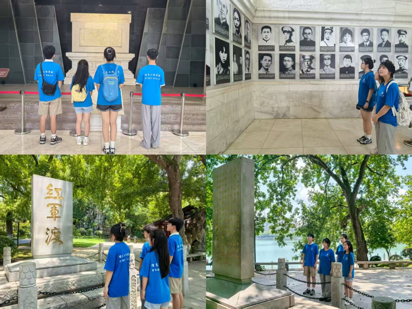 缅怀革命先烈志,赓续湘韵传薪火。走进湖南烈士公园,实践队员参观纪念专题陈列馆内的手书题词、烈士文抄以及英雄先烈们的历史照片和遗物;古银杏树下,红军渡石碑前,全体团员庄严肃立,表达为共产主义事业奋斗终生的坚定决心。