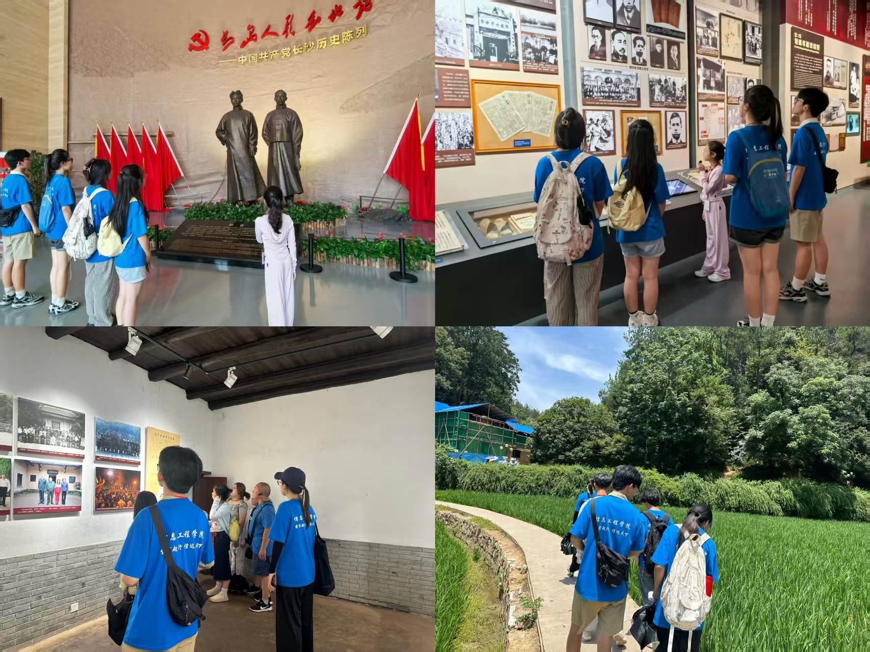 重温百年党史,追寻红色印记。在中国共产党长沙历史馆,队员们深入了解中共湘区委员会在毛泽东、李维汉等同志的领导下积极开展工农运动的革命事迹。在艺术碑廊,队员们与伟人 “隔空对话”,深刻感受革命先辈为理想信念不懈奋斗的精神力量。走进韶山毛泽东同志故居,一件件展品诉说着伟人坚韧的成长岁月。在“韶山毛泽东同志纪念馆”展区内,文物展陈与数字技术有机结合,将知识普及与价值引领深度融合,实践队员深入学习党的不懈奋斗史、不怕牺牲史、理论探索史、为民造福史、自身建设史。