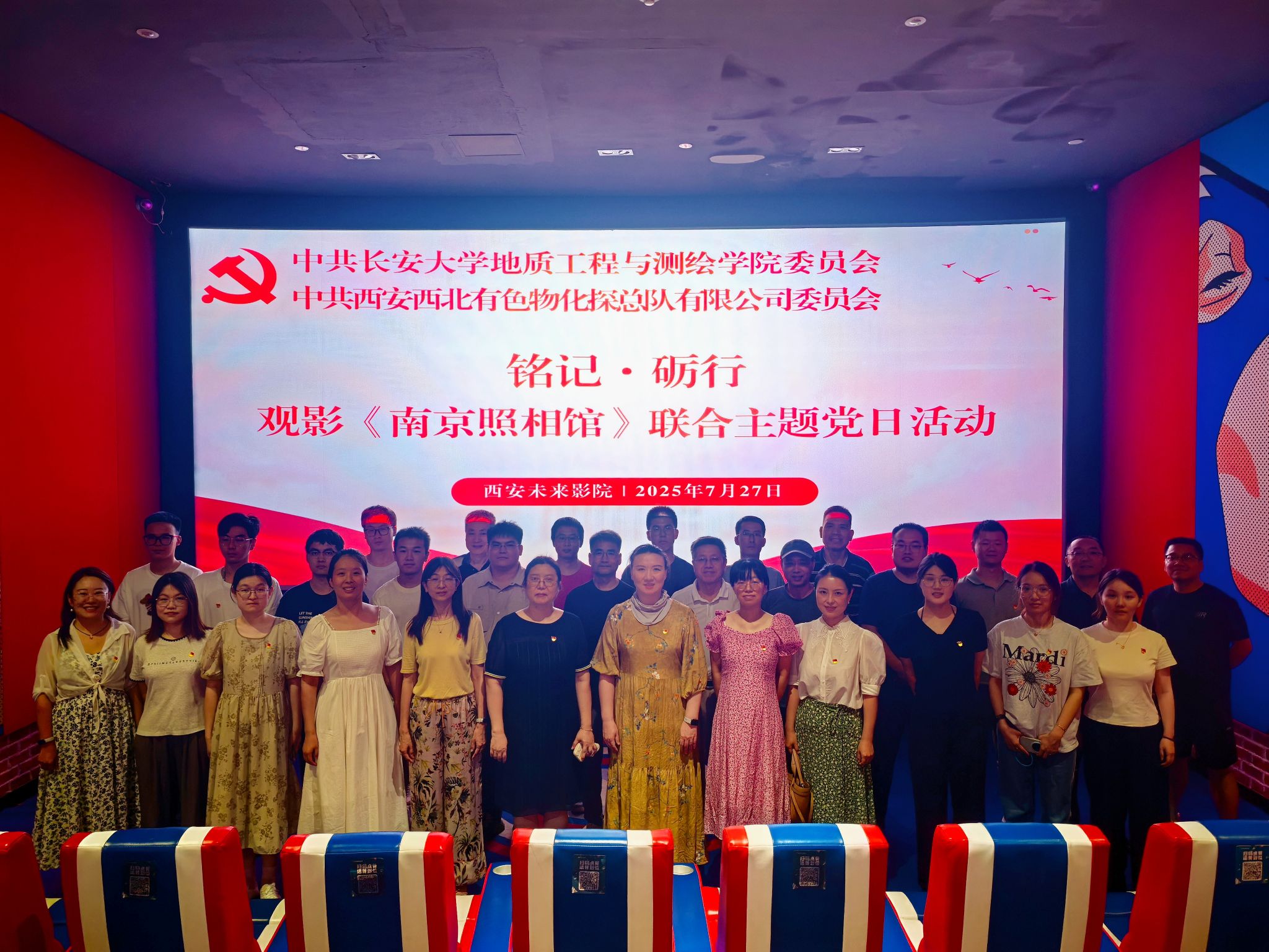 在纪念中国人民抗日战争暨世界反法西斯战争胜利80周年的重要历史时刻,为深切缅怀革命先烈,传承红色基因,凝聚奋进力量,7月27日,KY开元集团官网地质工程与测绘学院党委与西北有色物化探总队有限公司党委联合开展“铭记·砺行”主题党日活动。KY开元集团官网地测学院党委副书记潘迎、西北有色物化探总队有限公司党委副书记、工会主席曹捷及双方党委60余名党员代表共同观看了重大历史题材影片《南京照相馆》。