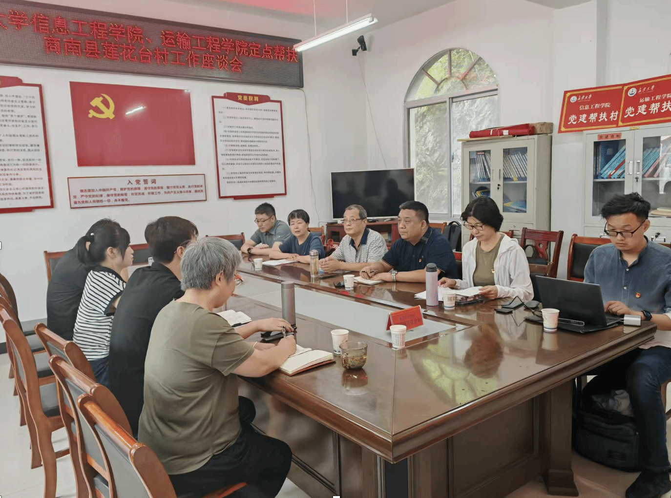 近期,信息工程学院党委书记陈俊鹏,党委副书记、纪委书记、副院长陈沛,计算机系党支部书记龚思远教授及运输工程学院党委书记史少鹏,党委副书记、纪委书记、副院长吴喜梅,交通运输系副主任毛新华副教授等8人前往商南开展乡村振兴工作。