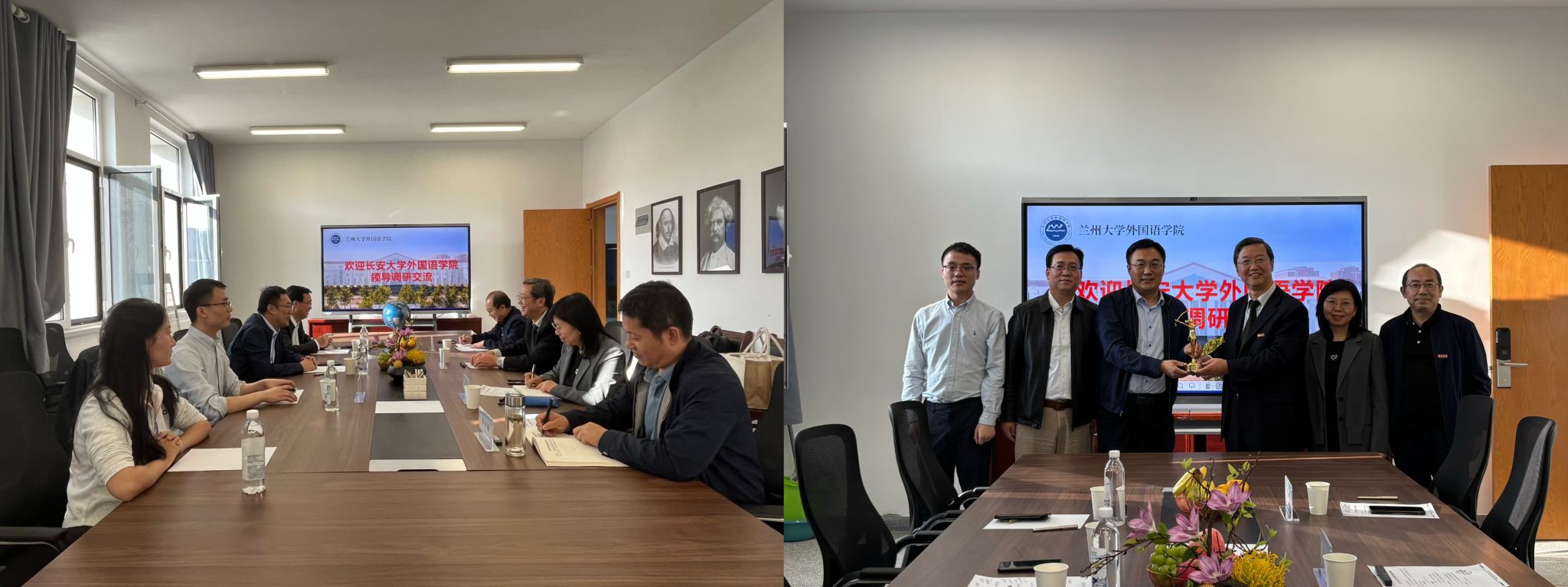 9月25日至27日,外国语学院党委书记张永,英语系主任赵斌、党支部书记买轶林,办公室主任杨光一行赴兰州开展调研交流活动,先后与兰州大学外国语学院、兰州交通大学外国语学院座谈交流,并走访浪潮甘肃公司。此次调研旨在借鉴兄弟院校在学科建设、人才培养及师资队伍建设等方面的先进经验,加强校企合作,推动学院高质量发展。