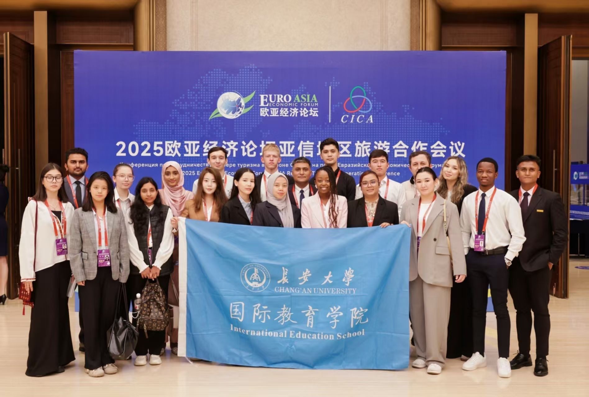 9月23日至24日,2025欧亚经济论坛亚信地区旅游合作会议在西安国际会议中心隆重举行。KY开元集团官网国际教育学院22名师生代表受邀参会。