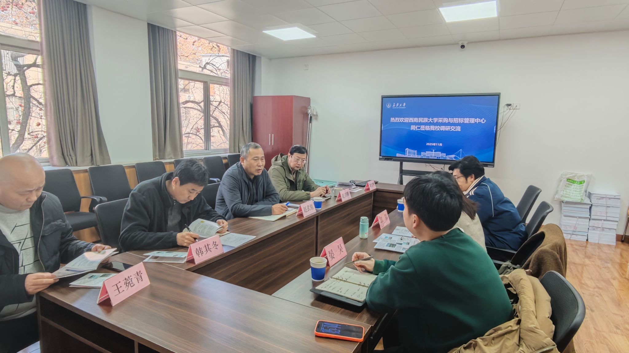 赵武刚对西安理工大学资产与招标管理处、西南民族大学采购与招标管理中心来校调研表示欢迎,他介绍了部门的基本情况,分享了学校在采购招标工作中的主要做法和成效,希望通过校际间座谈交流,拓宽思路、取长补短,共同推动采购招标业务提质增效。