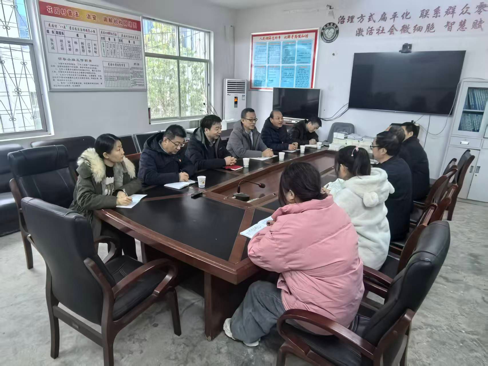 赴花园村村委会座谈