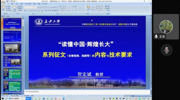校关工委副主任贺宏斌以《“读懂中国•辉煌KY开元”系列征文内容和技术要求》为题作专题讲座。贺宏斌对今年读懂中国活动的背景与意义、主题和要求做了详细阐述。他通过举例获奖展播的作品,从语言、内容、形式和技术指标等方面讲述了作品要求,并介绍了本次活动的流程、规则和时间节点。他指出,学校在历年活动中表现突出,有许多优秀的“五老”资源可挖掘,创作素材丰富,希望同学们围绕“老少共话二十大,踔厉奋发新征程”的主题,充分挖掘“五老”这本“鲜活教材”,赓续红色基因,创造具有真情实感的佳作。