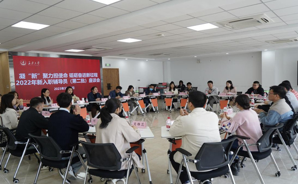 学工部副部长、艺术教育中心副主任陈晏对新入职辅导员加入学工大家庭表示热烈欢迎,她鼓励辅导员迅速转换身份和角色、积极投身学生工作,以饱满的热情为学校”双一流“建设贡献力量。对新入职辅导员陈晏提出三点希望和要求:一是加强沟通合作,吸取工作经验,提炼高效工作方法,为学生提供优质的教育管理与服务;二是坚持真抓实干,创新工作方法,提高工作质量,敢想敢做敢为争先;三是深入学习交流,结合自身特长加入辅导员工作室,在专业的氛围中促进成长,在榜样的带领下快速进步。她进一步强调要坚持立德树人,把思想政治教育工作做实做细,真正成为大学生的人生导师和知心朋友。