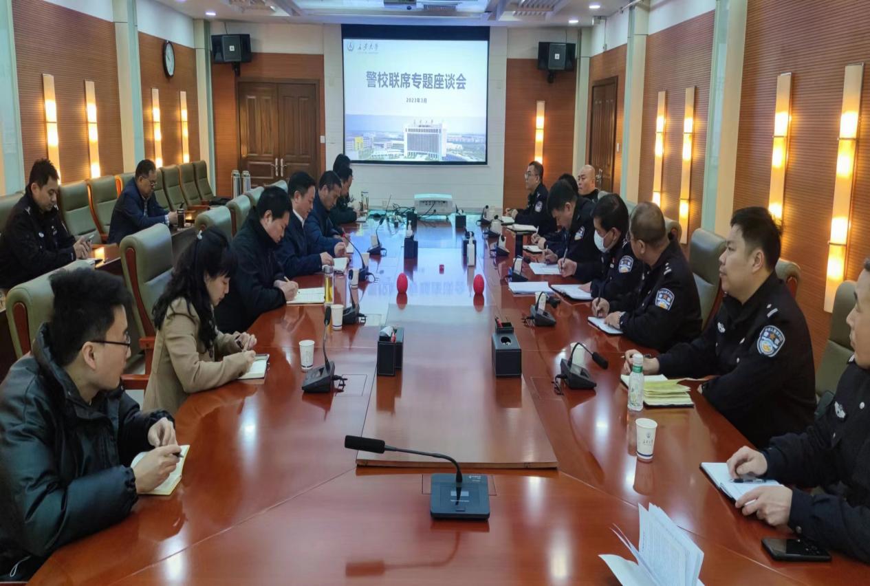 为做好校园安全稳定工作,深化警校合作,更好地服务师生员工,3月17日上午,公安未央分局副局长崔同利带领分局户政大队、国保大队、法制科、出入境管理科、汉城路派出所主要负责人,来校与学工部、保卫处、国际教育学院相关职能科室人员召开校园警务室建设专题座谈会。会议由保卫处处长黄飞主持。