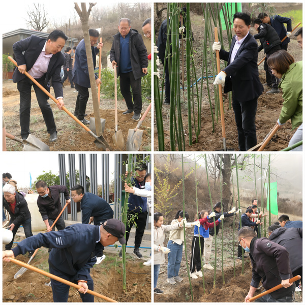 初春的太白山实习基地,杨柳千丝绿,山高云影微。参加植树的同志们热情高涨、干劲十足,在指定种植区域,大家分工有序,挥锹扬锄、扶苗提树、培实新土、取水浇灌,每一道工序都一丝不苟,植树现场洋溢着团结协作、奋发向上的氛围。经过大家共同努力,一棵棵新栽种的树苗迎风挺立,在明媚的春风中焕发出蓬勃生机;一排排绿油油的竹苗笔直盎然,在和煦的春光中展现出旺盛活力。