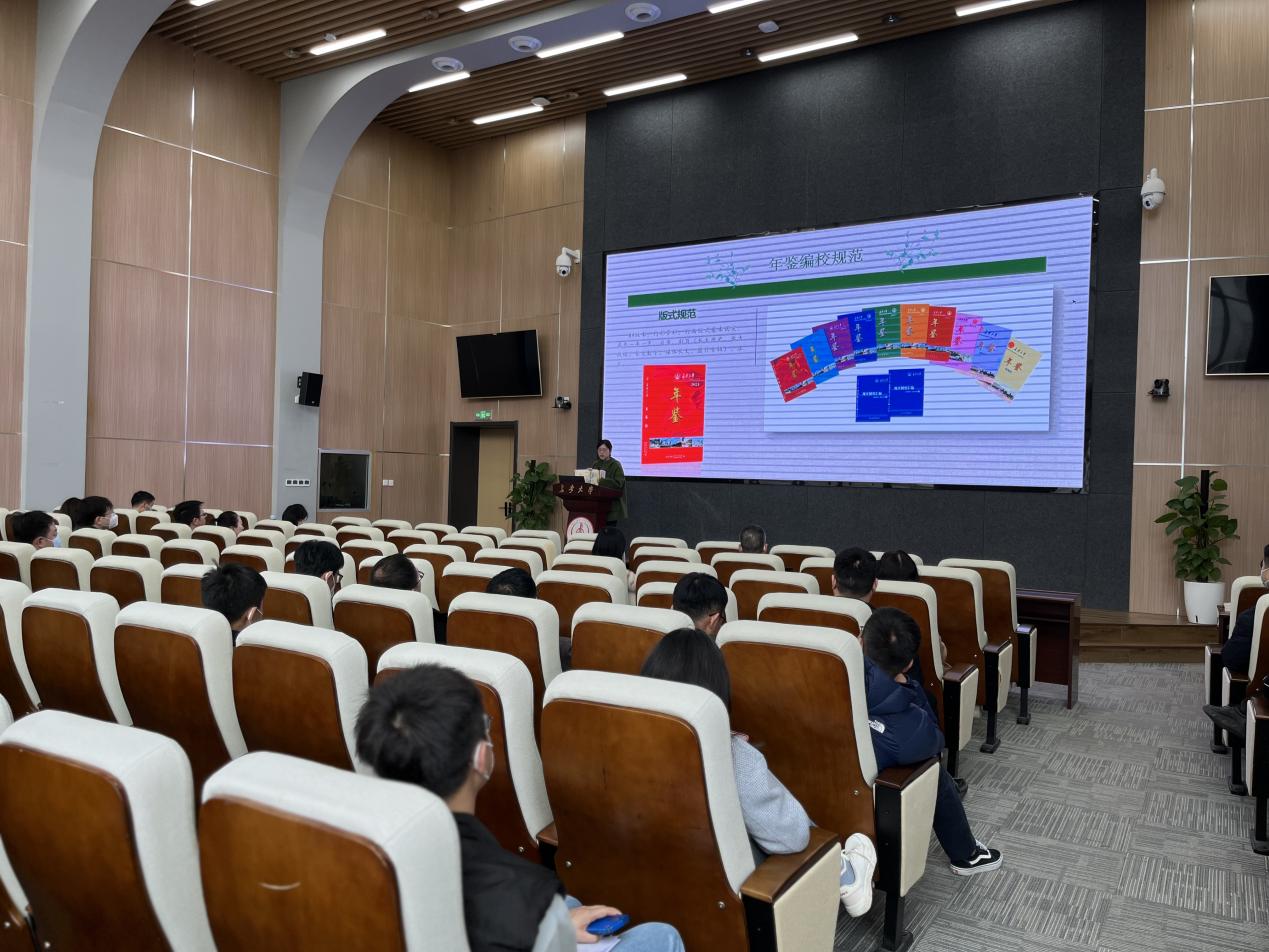 会上,藏萌从年鉴结构与内容、年鉴资料收集大纲、年鉴编校规范和需要注意的问题四个方面分享了年鉴撰写的经验与心得,对资料收集的原则、资料整理的方法、文字撰写的规范等方面的问题进行了详细讲解。会议通过丰富的案例分析,分享了年鉴版式、结构内容、标点符号和数字用法的具体规范,指出了目前年鉴组稿中存在的高频问题和相应的解决办法。