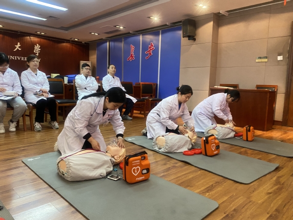 校医院联合学校多部门,连续多次为师生开展“生命至上 救在身边”培训,向广大师生传授心肺复苏、体外自动除颤仪使用方法。本学期将进一步针对全校不同学生群体及教职工持续开展AED操作技能及拯救心脏(Heart Saver,HS)各个模块的课程培训,帮助更多师生熟悉掌握各项急救技能,达到“人人学急救、急救为人人”的目的,切实为生命健康保驾护航。