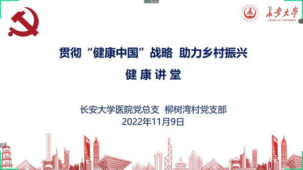 校医院党总支书记张嘉琦在主持讲座时指出,乡村要振兴,健康必先行,校医院深入学习党的二十大精神,积极贯彻“健康中国”战略,坚持党建引领,以“时时放心不下”的责任担当,关心了解柳树湾村乡村振兴情况,适时创新,探索疫情防控形势下健康帮扶新形式。今后将继续举办线上“乡村振兴健康讲堂”,针对当地不同病症,邀请专家医师作系列讲座,建立健康帮扶的长效化常态化机制,让“健康中国”切实惠及乡村振兴。