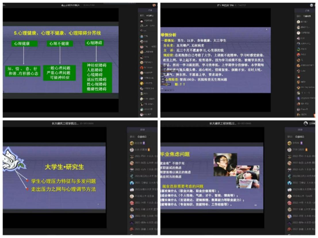 大学是人生发展的重要阶段,面临着学习、交友、恋爱、就业、成长等种种问题。渴望成才、追求卓越,良好的心理素质是成长成才的坚实基础和重要保障,本次专题讲座从心理学的专业角度,以通俗易懂的例子、科学的讲授方法,为不同阶段、不同境遇下的心理困扰,提供了切实可行的实操方法,帮助与会人员科学认识、正确对待心理健康问题,提升抗压释压能力,以更加理性、平和的心态应对生活中的挑战。