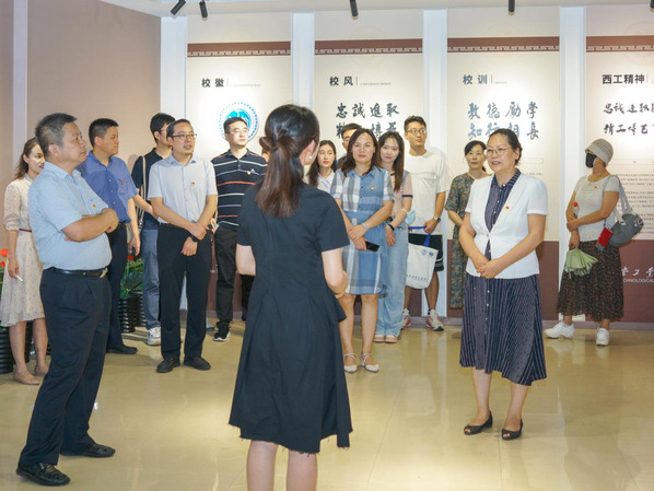抵达西安工业大学未央校区后,全体人员在工作人员带领下,先后参观了西安工业大学智造创新工场、校史馆、兵器馆,从陆、海、空三军导弹武器宣传展板以及逼真的模型和震撼的实物中感受“人民兵工精神”的深刻内涵;从一幅幅老照片、一件件历史实物与一段段感人故事中了解西安工业大学多年来为国家教育事业、区域经济和国防工业发展所做出的巨大贡献。