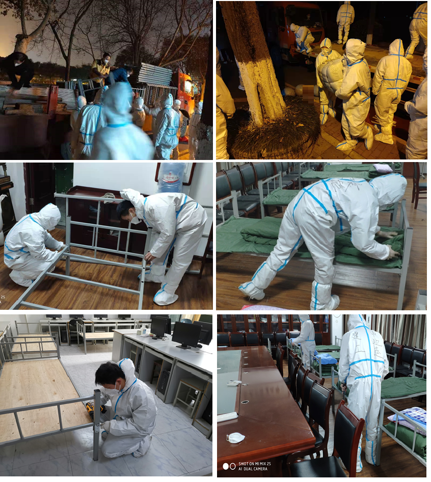 建工速度——100余张床铺紧急组装完毕。为保障集中隔离期满返校留观学生的住宿条件,2022年1月2日晚7点,建筑工程学院组建志愿服务突击队,在4个小时时间内紧急完成100余张简易床的卸货、搬运、组装任务,并将临时借住的会议室、教室等场所清扫干净,添置生活必需品,尽可能地为返校集中留观同学创造一个温馨、舒适、温暖的“家”。
