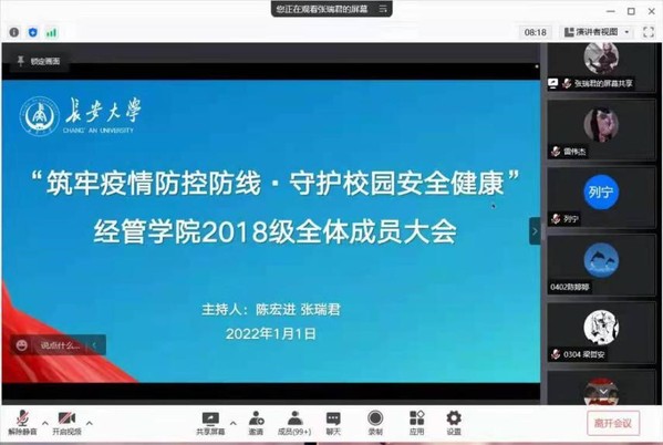 加强心理健康教育,人文关怀有爱。为有效疏导疫情之下学生压抑、焦虑的情绪,做好心理健康教育工作,学院通过引入心理讲座、加强人文关怀、丰富文体活动等多种途径提升心理健康教育效果,给予学生正向思想引导和暖心人文关怀,帮助学生顺利度过疫情期,提升心理健康水平。学院积极组织学生参加学校心理中心线上讲座、“京陕抗疫心理讲堂”系列公益讲座等,加强心理干预和疏导。建立隔离学生“一对一”帮扶台账,组织班主任、学业导师、研究生导师等队伍,每天联系关心隔离学生与校外居住学生,交流疫情防控进展,疏导不安情绪。依托学生组织及社团每日发布“早安心语”、推进“晚安计划”,举办“以家之名”宿舍云端茶话会,开展抗疫主题心理电影赏析、线上元旦晚会等校园文化活动,介绍疫情期间心理调试方法,加强宿舍文明建设,为学生情绪疏导和心理安慰提供了渠道,得到了学生的积极响应,坚定了学生战胜疫情的信心。