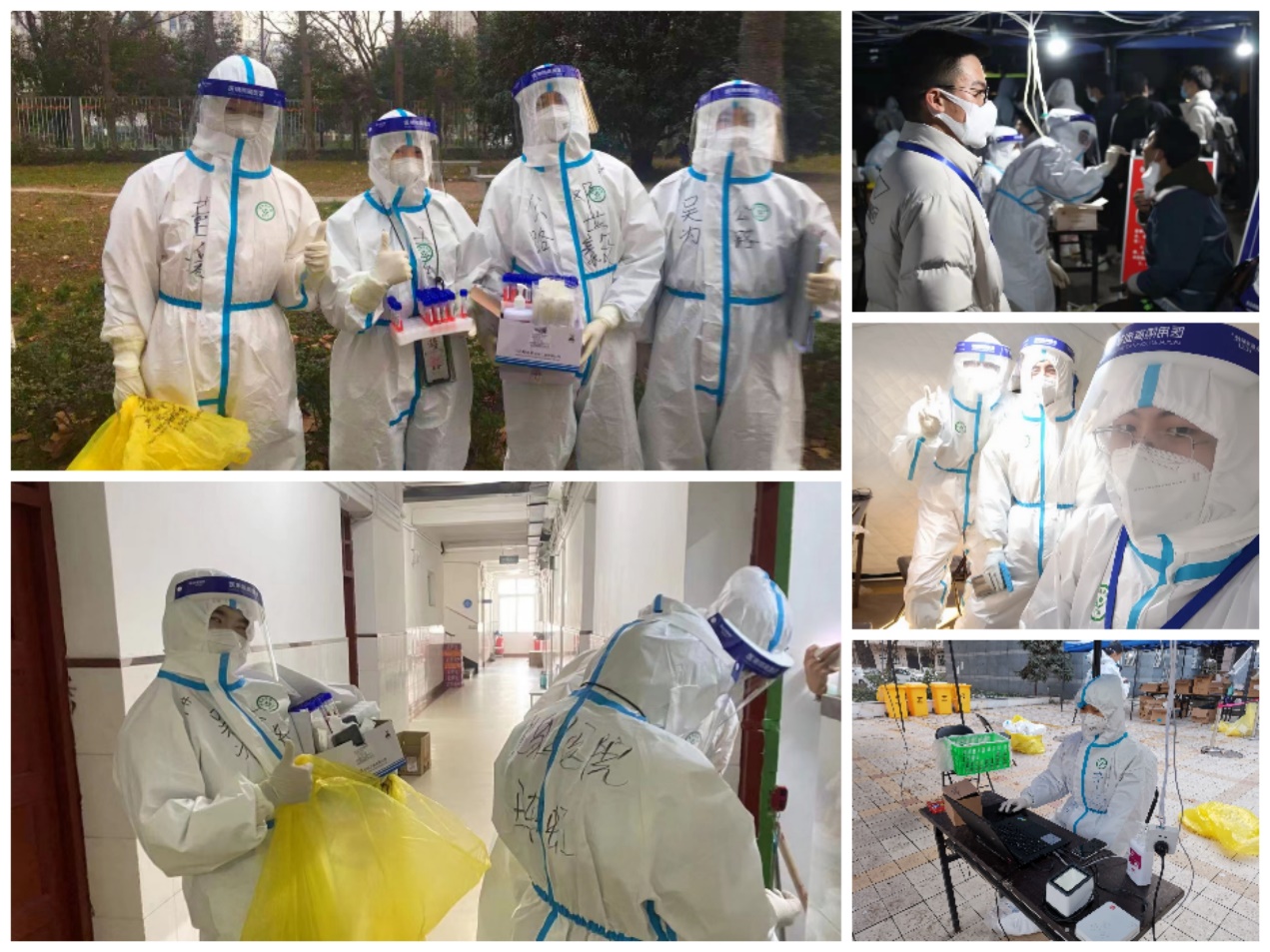 支援核酸采样尽显使命担当。在本次疫情防控中,由于学生基数庞大,为减轻医务工作者的工作量,保证核酸检测有序高效进行,我院党员志愿者不顾危险、逆行而上,投身于协助医务工作者核酸检测的工作中。其中硕2108党支部吴为、杨浩等志愿者协助医务工作者共同前往学生宿舍采集核酸样本;硕1912党支部张博星做为兼职辅导员更是积极发挥党员的先锋模范作用,在每次核酸检测时都身穿防护服值班;硕2104党支部党员、硕1904党支部辛磊,在核酸检测工作中主动担任现场秩序维护和健康码扫描确认的工作。在核酸检测工作中,我院研究生党员勇担挑战,共克时艰,助力疫情防控,充分发挥党员先锋模范作用和支部战斗堡垒作用,让党旗高高飘扬在疫情防控一线。