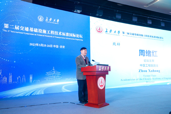 陕西省人民政府副省长叶牛平,中国工程院院士周绪红、何华武、刘加平、陈政清、郑健龙、田红旗、谢先启、岳清瑞、吕西林、冯夏庭、王明洋、汤中立,中国科学院院士彭建兵,新加坡工程院院士Fwa Tien Fang莅临现场。中国工程院外籍院士Yukio Tamura,南非工程院院士James Maina、Wynand Steyn以视频形式参会并作报告。来自芬兰、美国、爱尔兰、挪威、俄罗斯、南非、法国、印度尼西亚、马来西亚、日本等国家的知名学者和专家、指导单位和协办单位的相关负责人出席论坛。开幕式由校党委书记陈志坚主持。