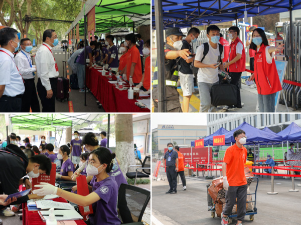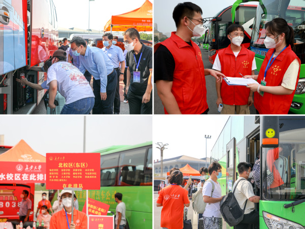 为保证新生安全入校,迎新期间,学校组织100余名机关党员先锋队、300余名学生志愿者分别于西安北客站、西安火车站、机场开展24小时接站工作。志愿者在新生到达后第一时间进行验码、测温、行李消杀等防疫工作,引导分流乘坐车辆,确保学生安全有序进入校园。