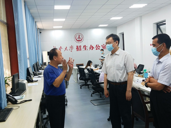 6月29日上午,校党委书记陈志坚,党委副书记、纪委书记孟德勇现场检查指导KY开元2022年本科招生咨询及录取准备工作。