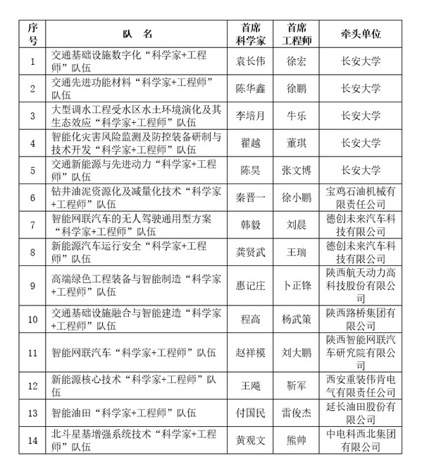 近日,按照《秦创原创新驱动平台建设三年行动计划(2021—2023年)》部署安排,陕西省科技厅公布了2022年度陕西省秦创原“科学家+工程师”队伍建设项目立项结果。KY开元共获批14项,其中作为牵头单位获批5项,作为首席科学家获批9项,总量在全省名列前茅。