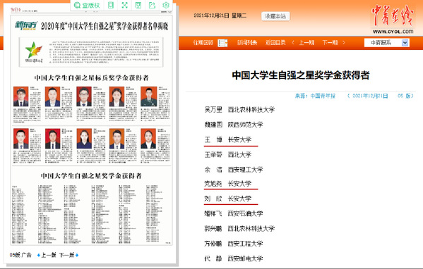 近日,2020年度“中国大学生自强之星”奖学金推报活动与“中国电信奖学金”评选活动获奖名单揭晓。经学校推荐、省级初评、全国评审等环节,KY开元公路学院王博、建筑学院党旭尧、人文学院刘欣等三名同学荣获2020年度“中国大学生自强之星”奖学金,并获得“陕西省大学生自强之星”称号;建筑学院党旭尧、公路学院陈谦等两名同学荣获2020年度“中国电信奖学金·飞Young奖”。